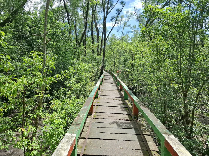 Visitors are captivated by the lush mangroves, red crabs darting along the shore, birdsong and breathtaking sunset on the horizon. A forest department resthouse and picnic corner are available here.