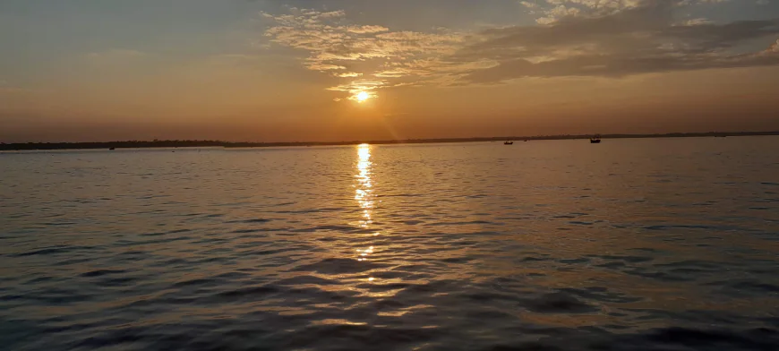 A stunning sunset view from Char Fashion, Bhola, where the sky meets the tranquil waters.