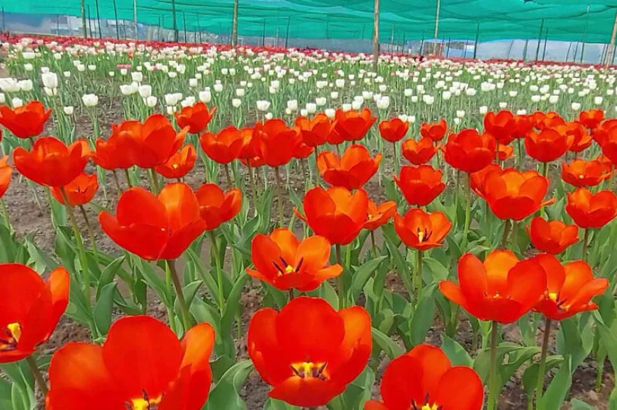 For the fifth consecutive year, exotic tulips have bloomed across a sprawling 60-decimal farm in Tentulia, turning the landscape into a riot of colour. The garden features around 14,000 tulips in five varieties, including Lalibela (red), Denmark, Strong Gold (yellow), and Mystic Van Eyck (pink).