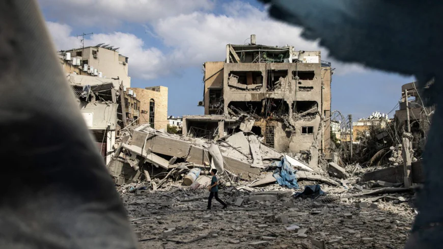 A young boy walks through the debrisat the site of an Iranian missile strike in Bnei Brak, east of Tel Aviv. Photo: AFP