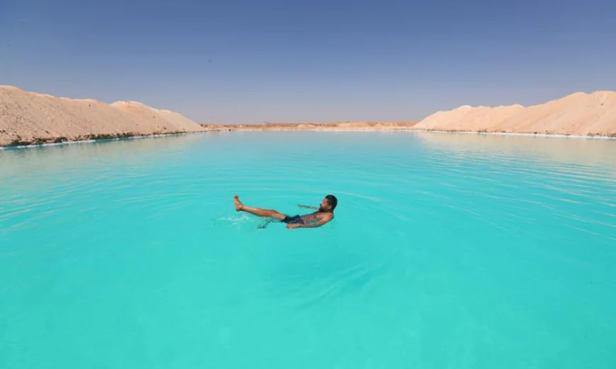 The Siwa Salt Lakes in Egypt’s Siwa Oasis are known for their striking turquoise water and for a rare experience: in many of the pools, it is extremely difficult to sink